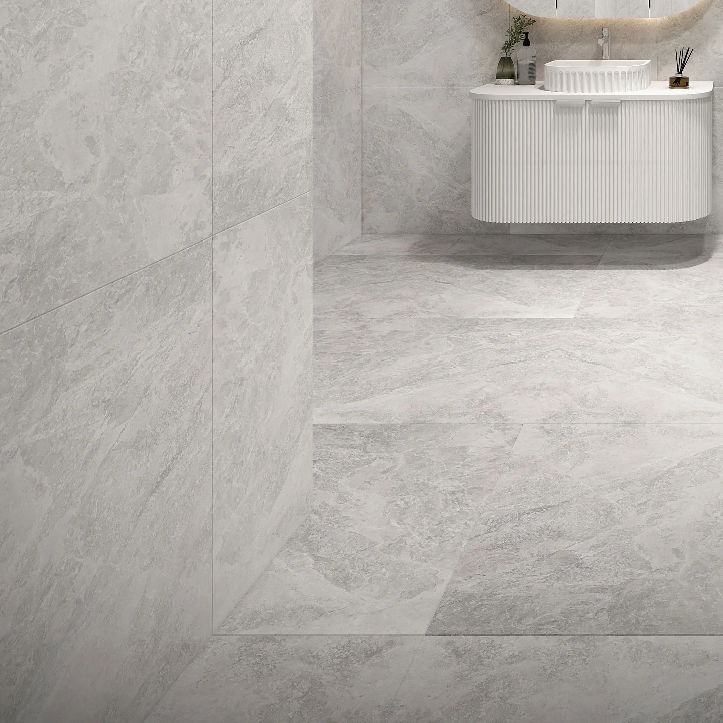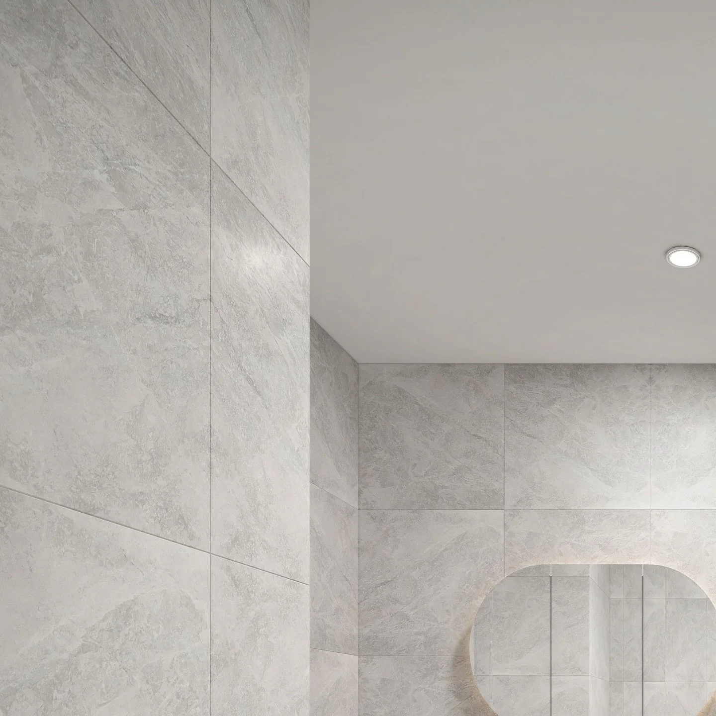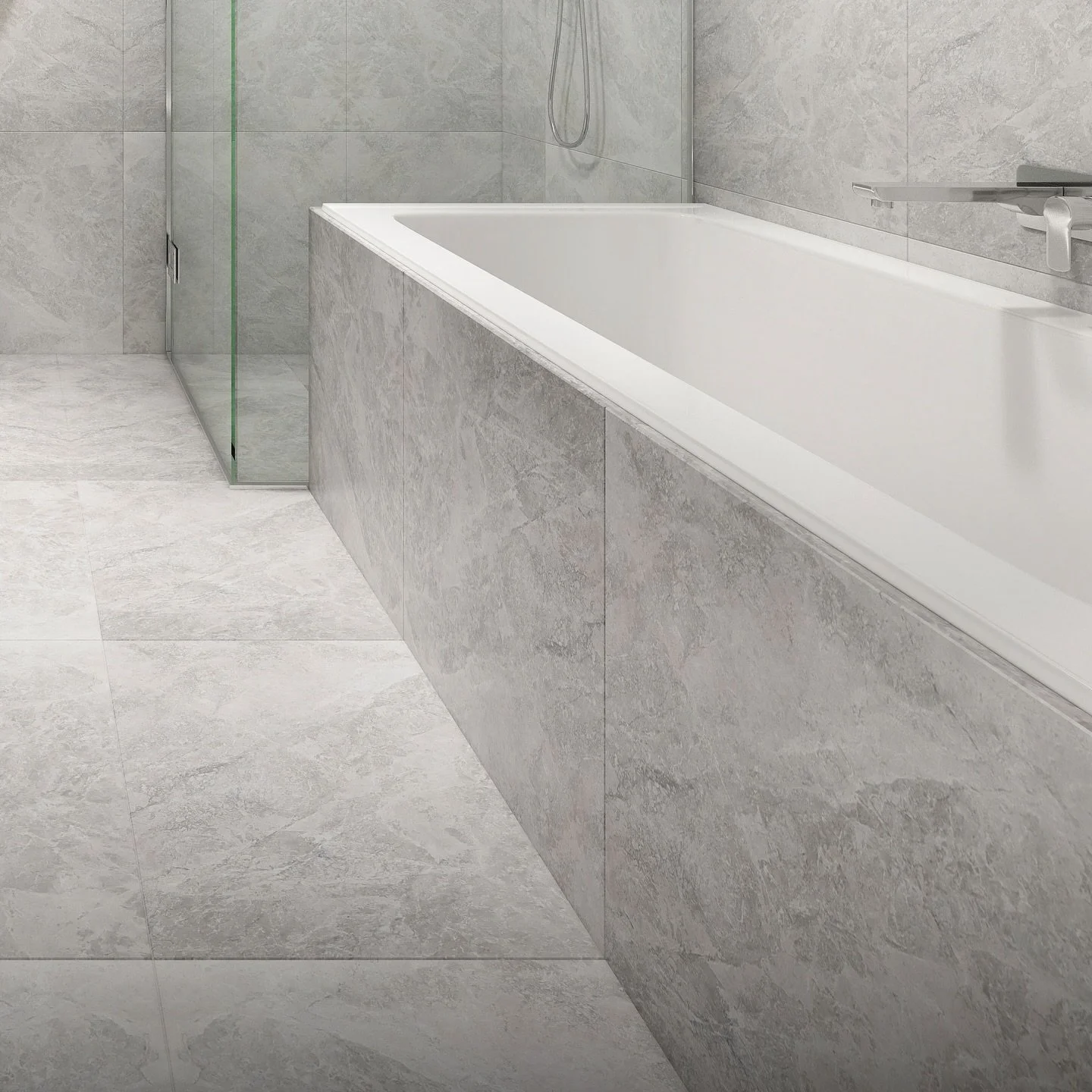 Floor to ceiling porcelain wall tiling to the bathrooms